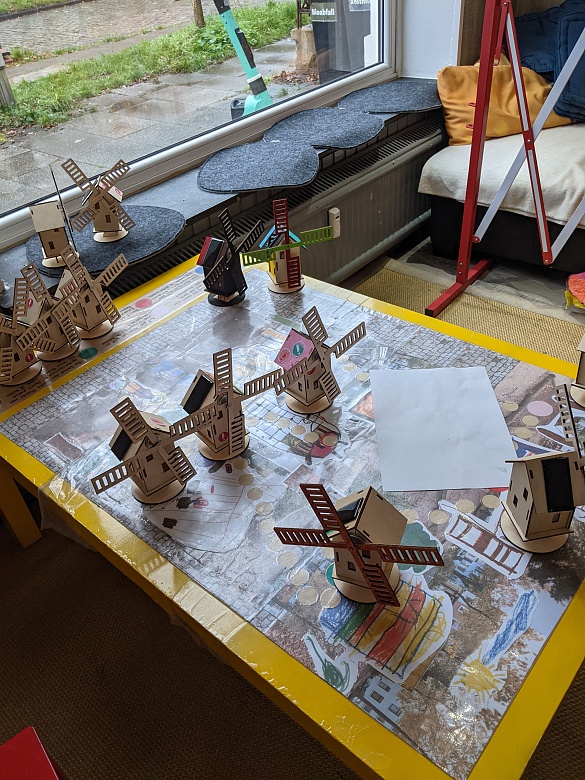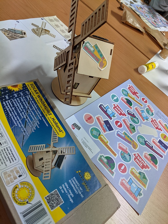 Die Mitarbeiterinnen und Mitarbeiter haben mit den Schülerinnen und Schülern über den Klimaschutz gesprochen. Zusätzlich durften Solarwindmühlen gebaut und Butter aus Sahne hergestellt werden.